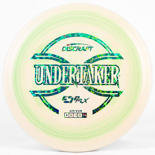 The Discraft Undertaker (ESP FLX) is a stable disc golf distance driver that is made for control and phenomenal for advanced beginners and intermediate players. Made with Discraft's ESP FLX plastic, this disc is slightly less stable than traditional ESP and is more flexible. It still offers the same incredible grip and the added flexibility contours to the hand nicely. If you are looking for an incredibly versatile control driver, the Discraft ESP FLX Undertaker is a great option.
