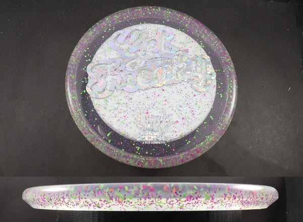 In flight, the Z FLX Confetti Zone delivers the same torque-resistant, overstable control the Zone is known for, with a slightly softer finish thanks to the flexible plastic. Thrown flat or on forehand, it resists turn, pushes forward briefly, and finishes with a strong, predictable fade. The added flex helps reduce skips and ground play, making it ideal for touchy approaches where you want the disc to land and stick.