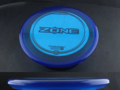 In flight, the Z Line Zone delivers a flat, torque-resistant flight with a strong, predictable fade. Thrown hard, it resists turn and pushes forward before finishing reliably, making it ideal for controlled approaches, forehand flicks, and short tee shots. It excels in headwinds and on touch shots where you need the disc to sit down quickly without drifting past the target.