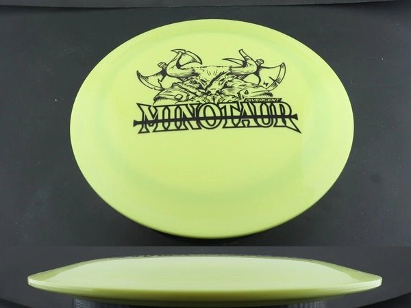 The Divergent Minotaur is a reliably overstable fairway driver built for control, power, and aggressive angles. With a beefy fade and no turn, it excels at forehand lines, spike hyzers, and flex shots that demand a hard finish. Whether you're navigating around tight corners, fighting headwinds, or executing precision skips, the Minotaur delivers consistent, dependable results.
