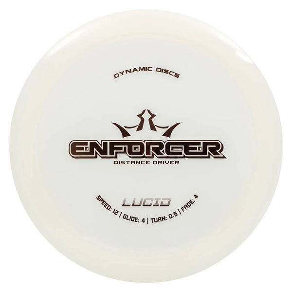 View full detailsLucid Enforcer offers maximum durability in a stiff, translucent plastic. This version of the Dynamic Discs Enforcer holds its very overstable flig...