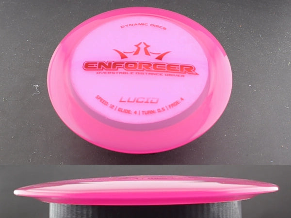 View full detailsLucid Enforcer offers maximum durability in a stiff, translucent plastic. This version of the Dynamic Discs Enforcer holds its very overstable flig...