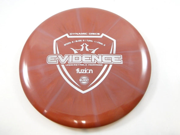 View full detailsFuzion Burst Evidence combines the premium grip of Fuzion with colorful burst patterns. This version of the Dynamic Discs Evidence provides straigh...