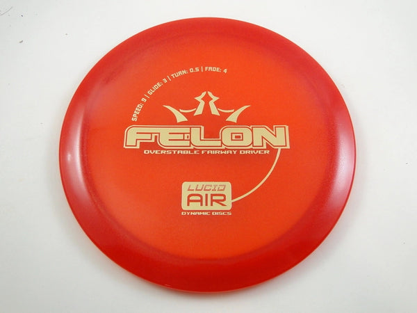 The Lucid Air Felon brings the trusted overstability of Dynamic Discs’ premier control driver into a lighter, more accessible package. Molded in premium Lucid Air plastic with bubble-infused technology, this version reduces weight while maintaining the Felon’s signature torque resistance and dependable fade. The result is a disc that’s easier to get up to speed, offering effortless distance without sacrificing control.