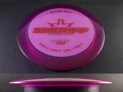 The Lucid Ice Sheriff combines speed, control, and premium durability in a sleek, stiff plastic blend. Molded from Dynamic Discs’ Lucid Ice plastic, this version offers a slightly firmer feel and a touch more stability than standard Lucid — giving players a dependable, high-performance distance driver that holds its line even in tougher conditions.
