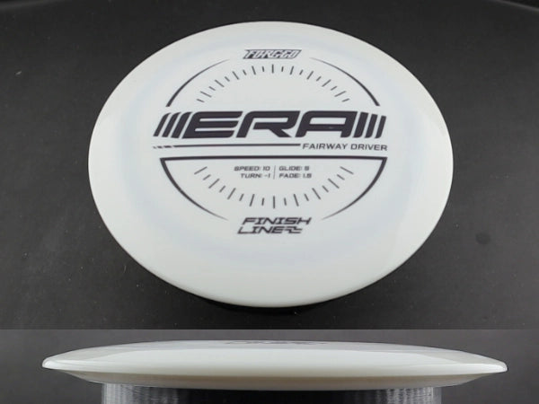 The Finish Line Era is a versatile control driver built for precision, glide, and effortless distance. As the first disc designed by Drew Gibson under the Finish Line brand, the Era blends fairway control with distance-driver performance. Its flat top, clean rim, and neutral stability make it an all-purpose driver that performs reliably for players of all skill levels.