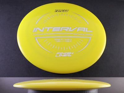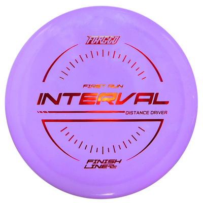 The Finish Line Interval is a high-speed distance driver engineered for powerful, controlled flights. Designed with input from Drew Gibson, the Interval delivers big-distance potential with a touch of finesse—perfect for intermediate and advanced players looking to shape long, confident lines with minimal effort.