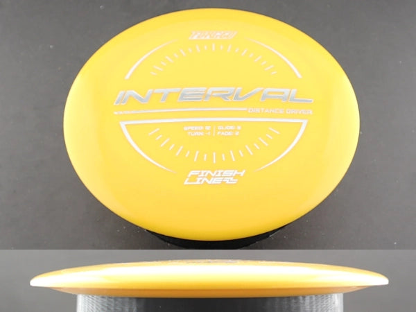 The Finish Line Interval is a high-speed distance driver engineered for powerful, controlled flights. Designed with input from Drew Gibson, the Interval delivers big-distance potential with a touch of finesse—perfect for intermediate and advanced players looking to shape long, confident lines with minimal effort.