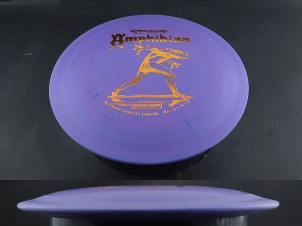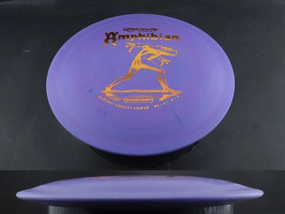 The Gateway Amphibian in Sure Grip plastic is a unique, torque-resistant midrange and approach disc designed for players who demand control and reliability in any weather. With a slightly overstable flight and a low-profile design, the Amphibian excels in wet or humid conditions—providing a secure grip and consistent release when other plastics might slip. True to its name, this disc performs just as well in the rain as it does in the dry, giving players dependable control no matter the environment.