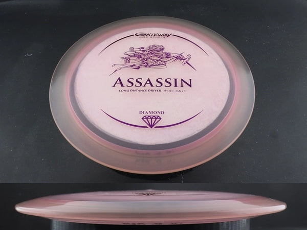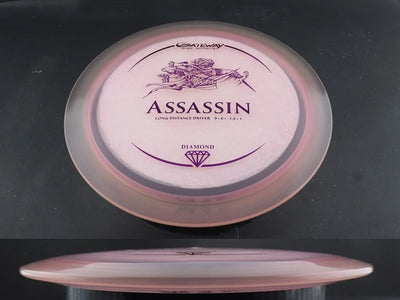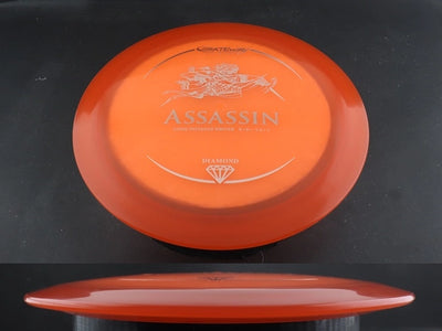 The Assassin offers a neutral-stable flight with a touch of high-speed turn and a gentle, forward-pushing fade. It glides exceptionally well, allowing players to achieve sneaky distance without sacrificing control. Thrown on hyzer, it pops up to flat and carries straight; on a flat release, it holds its line before fading softly at the finish. The Diamond plastic enhances its consistency and longevity, maintaining flight stability over time.