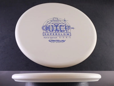 The Gateway Chief OS in Sure Grip Superglow plastic is an overstable, beadless putter built for controlled power, confident approaches, and reliable fade—day or night. Designed to handle torque and headwinds with ease, the Chief OS provides a flat-topped profile and smooth release that feels comfortable in the hand for both backhand and forehand throws. The Sure Grip Superglow plastic offers a tacky, slightly flexible feel with a bright, long-lasting glow, making it a go-to option for glow rounds and low-light conditions.