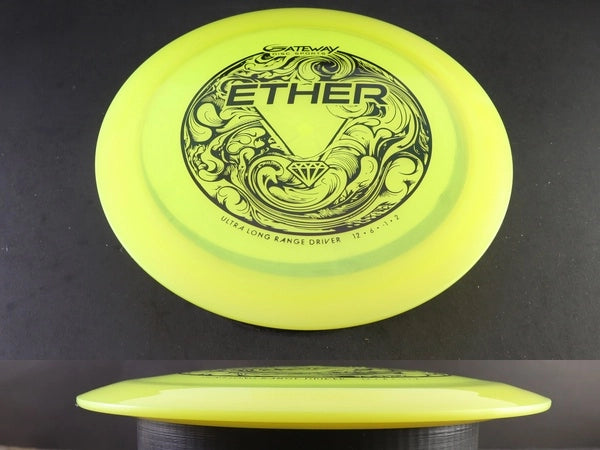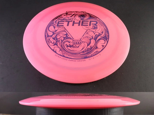The Gateway Ether in Diamond plastic is a high-speed distance driver built for power throwers and precision distance control. Designed to deliver maximum speed and glide with a reliable fade, the Ether combines effortless distance potential with the trusted consistency Gateway drivers are known for. The premium Diamond plastic provides exceptional durability, a grippy yet firm hand feel, and a clean release—ideal for players who want professional-level performance and long-lasting stability.
