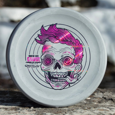 The Gateway Ghoul in Lunar plastic is a glidey, straight-flying putter designed for clean releases, smooth flights, and exceptional visibility during night rounds. With a beadless, low-profile design and a neutral-stable flight, the Ghoul offers easy control for both putting and throwing. The Lunar plastic blend glows brightly in the dark while maintaining a tacky, medium-firm feel that delivers excellent grip and confidence no matter the lighting conditions.