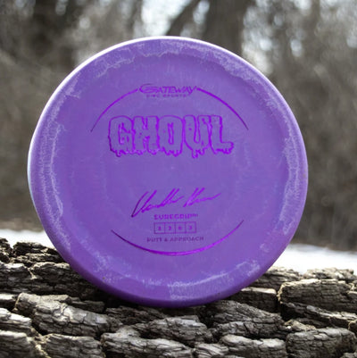 The Gateway Ghoul in Sure Grip plastic is a straight-flying, beadless putter designed for smooth releases, easy control, and a confident feel on the green. With its comfortable, low-profile shape and neutral-stable flight, the Ghoul excels as both a putting and throwing putter—offering effortless glide and reliable accuracy. The Sure Grip blend provides a slightly tacky, flexible feel that ensures secure grip and a clean release in all weather conditions.
