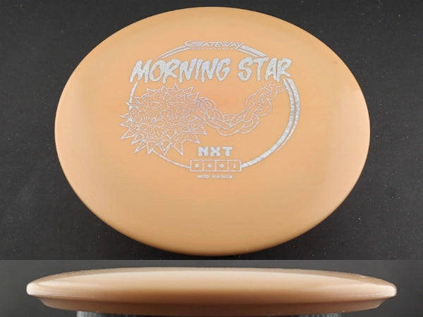 The Gateway Morningstar in NXT plastic is an overstable midrange designed for controlled approaches, headwind stability, and reliable fade. Built to handle torque and power, the Morningstar delivers a smooth, consistent flight that holds its line before finishing strong and dependable. The premium NXT plastic provides a tacky, slightly gummy texture with excellent grip and durability—offering confident control and consistent performance in all conditions.