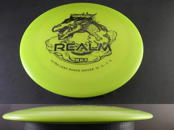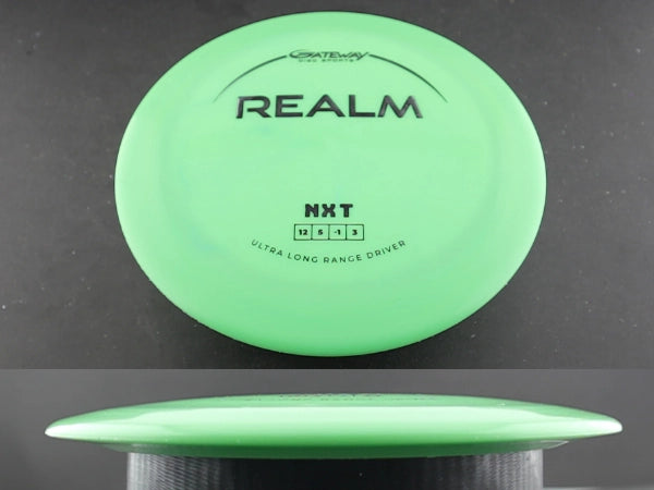 The Gateway Realm in NXT plastic is a high-speed, stable distance driver designed for players who want maximum glide, controlled power, and dependable fade. Built to deliver long, accurate flights without sacrificing control, the Realm offers a balanced blend of speed, workability, and torque resistance. The premium NXT plastic adds a slightly gummy, tacky feel with excellent grip and durability—perfect for players who want a confident release and long-lasting consistency in all throwing conditions.