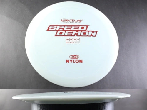 The Gateway Speed Demon in Nylon Blend plastic is a high-speed, overstable distance driver built for power, control, and confidence in any condition. Known for its strong fade and exceptional torque resistance, the Speed Demon is designed for players who need a reliable disc that won’t turn over, even on the hardest throws. The premium Nylon Blend plastic adds superior grip, stiffness, and long-lasting durability—perfect for players who demand consistent performance from a pro-grade driver.