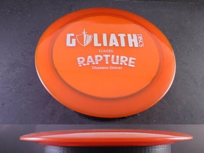 The Goliath Discs Rapture in Oasis plastic is a stable-to-overstable distance driver built for power, control, and confident finishes. Designed to handle torque and maintain a consistent flight at high speeds, the Rapture delivers a strong, forward-pushing fade with dependable stability. The Oasis plastic blend provides a grippy, semi-flexible texture with a premium matte finish—offering superior control, excellent hand feel, and long-lasting durability in all conditions.