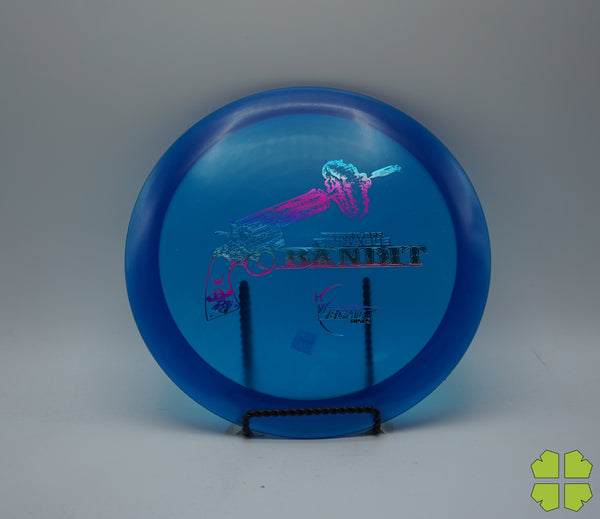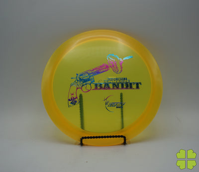 The Bandit is an excellent straight flying driver that will provide more distance than the Rival, but doesn’t require as much arm speed as the Cannon or Rampage. Experienced disc golfers will get great distance out of the Bandit when thrown at a slight hyzer angle, while those with slower arm speeds will see great results from flat level throws.