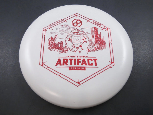 The Infinite Discs Artifact in D-Blend plastic is a flat, reliably overstable approach disc built for precision, clean releases, and confident control inside 250 feet. Known for its minimal glide and dependable fade, the Artifact shines on forehand touch shots, backhand hyzers, and any approach where you want the disc to sit down quickly without skipping. D-Blend plastic offers a grippy, baseline feel that provides excellent touch and control, making this version especially effective for players who value consistency and feel over durability.