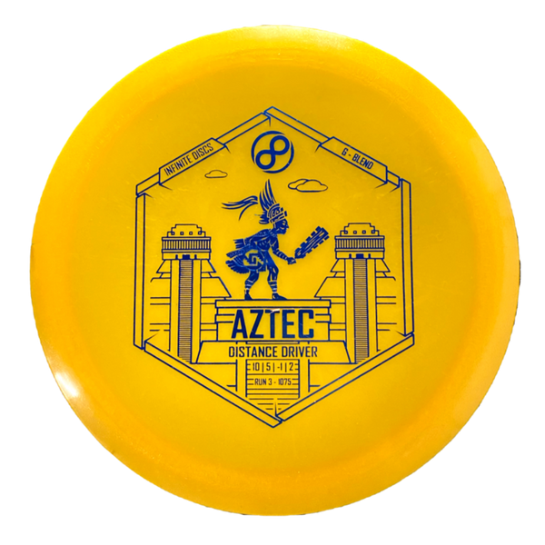 The Infinite Discs Aztec in G-Blend plastic brings this dependable distance driver into a soft, gummy premium blend known for its exceptional grip and slightly straighter flight. G-Blend has a flexible, almost rubbery feel that sits comfortably in the hand and offers a clean release—even in wet or cold conditions. This version of the Aztec tends to fly a bit less stable than S-Blend or C-Blend, giving players easier hyzer-flips, longer glide, and more workable turn.