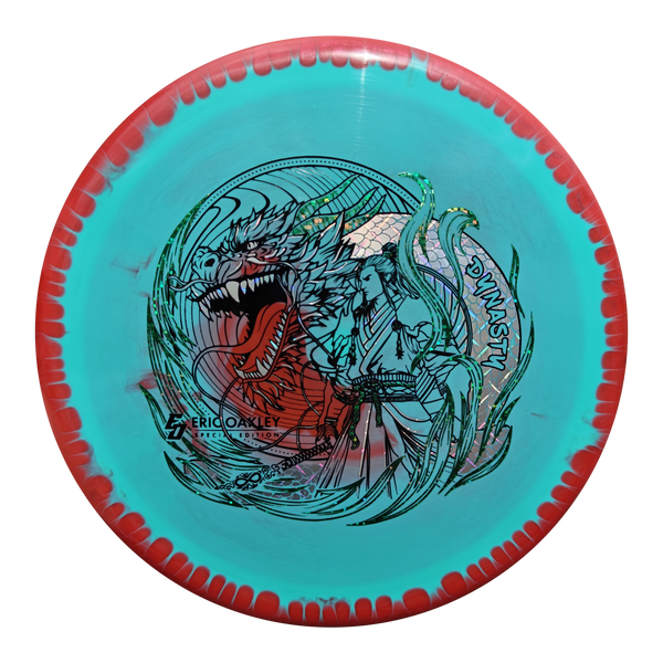 In Signature Halo S-Blend, the Dynasty holds a straight, neutral high-speed flight with just a touch of workable turn before finishing with a dependable, forward-pushing fade. The added stability helps the disc stay on line in light wind and supports both backhand and forehand releases. Expect clean hyzer-flips, straight control shots, and shaping lines that stay predictable from the first throw to the hundredth.