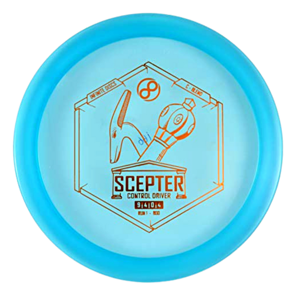 The Infinite Discs Scepter in C-Blend plastic delivers this dependable overstable fairway driver in a premium, ultra-durable blend similar to Champion plastic. C-Blend offers a firm, smooth feel with excellent resistance to wear, allowing the Scepter to maintain its strong stability and predictable fade over long-term use. This version is ideal for players who want a no-frills, consistent control driver that stays true to its flight.