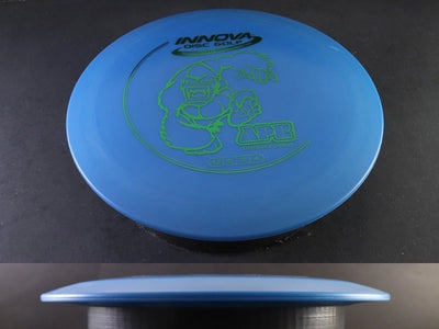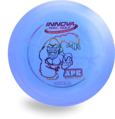 The Innova Ape in DX plastic brings this high-speed, ultra-overstable distance driver into Innova’s grippiest and most affordable blend. DX plastic provides excellent tack and a clean release, making it easier to get a solid hold on the Ape’s wide rim. While DX beats in faster than premium plastics, it remains reliably overstable for a long time—starting out as a true power disc and gradually seasoning into a more workable, high-speed bomber.