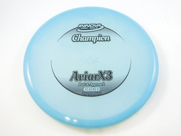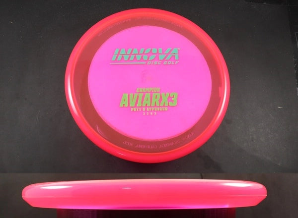 The Innova AviarX3 in Champion plastic is a highly overstable throwing putter engineered for power approaches, confident forehands, and wind-resistant control. Designed as a beefier, torque-proof evolution of the Aviar3, the AviarX3 offers a firmer fade and more resistance to high-speed turn—making it a go-to option for players who lean on their putter for utility shots and precision placement. Champion plastic adds maximum durability with a smooth, semi-firm feel that maintains overstability longer than any baseline blend.