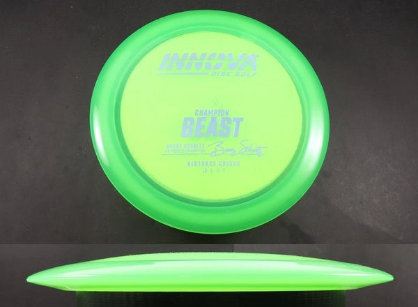 The Champion Beast by Innova is a long-distance control driver built for powerful, consistent S-curve flights. Champion plastic gives the Beast a firmer hand feel, outstanding durability, and increased torque resistance—making it ideal for players who want long, accurate drives that hold up to both power and wind.