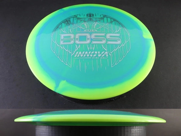 The Halo Star Boss by Innova is a high-speed distance driver built for players who demand maximum power and control. Halo Star plastic offers a firmer, more durable feel with added stability compared to standard Star runs, giving the Boss unmatched torque resistance and consistent fade for confident, full-power throws.