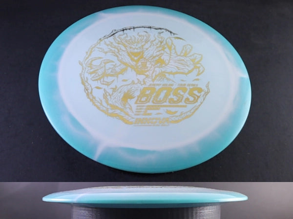 The Innova Boss in Signature Halo Star plastic delivers this iconic high-speed distance driver in one of Innova’s most premium blends. Halo Star plastic features a firmer, grippy Star core surrounded by a stunning, high-contrast halo rim. This run is known for increased durability and a touch more stability than standard Star, making it an ideal choice for power throwers who want maximum distance with a dependable, late-flight fade.