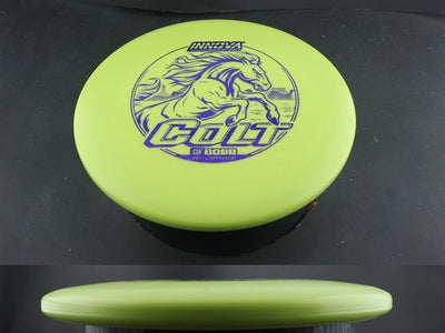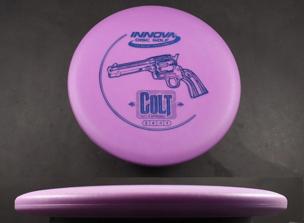 The DX Colt by Innova is a straight-flying, low-profile putter that excels at both putting and approach shots. Crafted from grippy DX plastic, it provides excellent hand feel and control, making it easy to shape lines with confidence. The Colt’s reliable glide and neutral stability make it a great option for players who want a point-and-shoot disc that seasons quickly for added versatility.