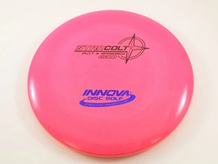 The Innova Colt in Star plastic is a low-profile, point-and-shoot putt-and-approach disc designed for players who want a clean release, straight flight, and dependable control from tee to green. With its shallow rim and VTech design, the Colt feels fast and comfortable in the hand, making it an excellent choice for driving putter shots, touch forehands, and smooth, straight approaches. The Star plastic blend adds premium grip, durability, and a slightly firmer feel that keeps the Colt flying true long after it’s in the bag.