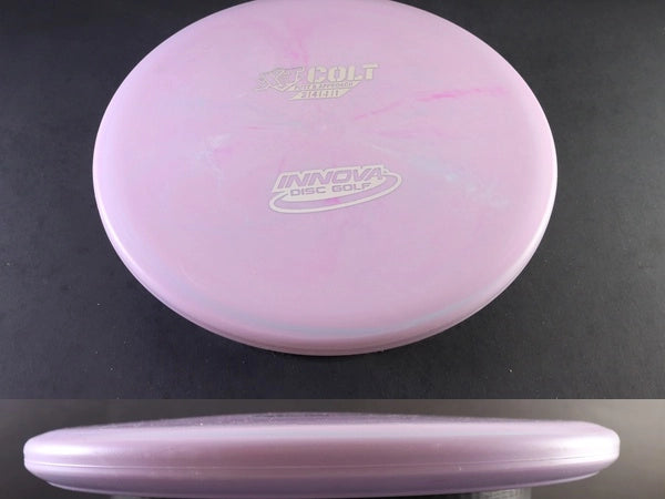 The XT Colt by Innova is a versatile putt-and-approach disc designed for control and comfort. Made from durable, tacky XT plastic, it provides a firm yet grippy feel that ensures a clean release and steady performance round after round. With its slow-beating nature, the XT Colt maintains its straight, point-and-shoot flight for longer, making it a dependable option off the tee or on the green.