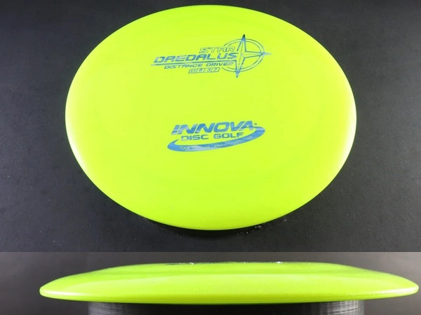The Star Daedalus by Innova is a high-speed distance driver designed for effortless distance and control. Star plastic provides exceptional durability, consistent grip, and reliable performance, giving the Daedalus a smooth, glide-heavy flight that excels in tailwinds and open-field drives.