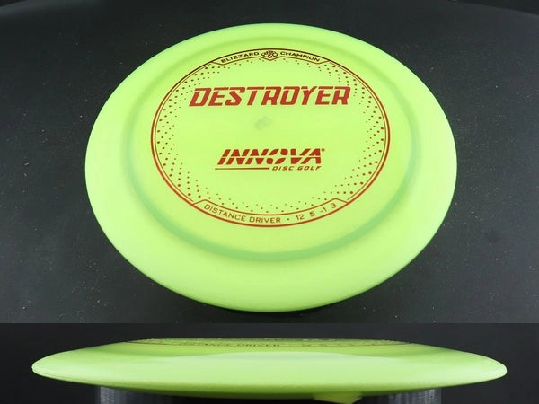 The Blizzard Champion Destroyer by Innova is a lightweight version of one of the most popular distance drivers ever made, offering max-distance potential with less effort. Blizzard Champion plastic uses microbubbles in the rim to reduce weight while maintaining the strength and stability of standard Champion plastic—perfect for players with slower arm speeds who still want big distance.