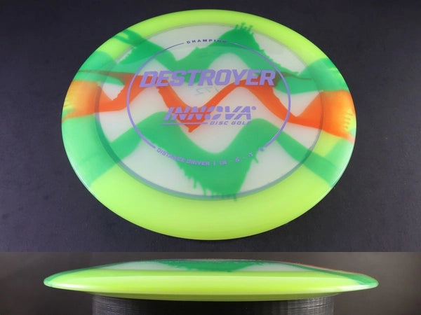 The Champion Dyed Destroyer by Innova pairs one of the most trusted distance drivers in disc golf with striking factory-dyed designs for added personality on the course. Champion plastic delivers premium durability, a stiff feel, and consistent overstability—making it a go-to for powerful throwers who demand control at high speeds.