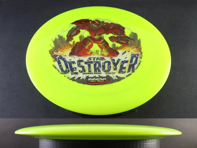 The Destroyer starts fast, holds a stable line through the high-speed portion of the flight, and fades hard and reliably at the end. It offers a touch of workable turn for shaping long S-curves, but remains overstable enough to handle headwinds and high-torque releases. The Star blend gives it a comfortable, slightly flexible feel that works well in all weather conditions, while the InnVision graphics ensure every disc is visually unique and durable.