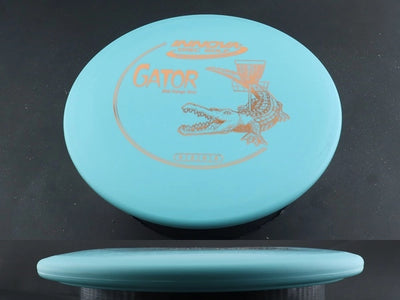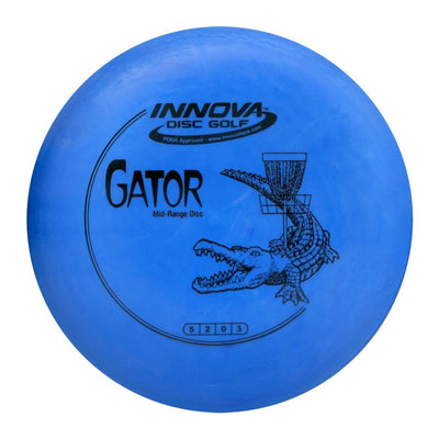 The Innova Gator in DX plastic offers the grippy, affordable baseline feel that makes it easy to control this famously overstable midrange. DX plastic provides excellent touch and a clean release, giving players a confident hold on short approaches and utility shots. As it seasons, the disc becomes slightly straighter while still keeping the dependable fade that defines the Gator.