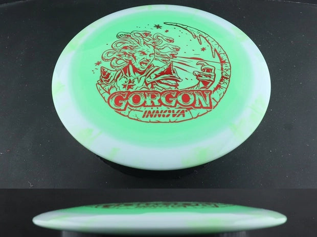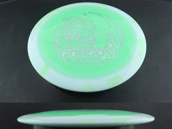 The Innova Gorgon in Halo Star plastic is a control-oriented distance driver designed to blend the easy, glidey feel of a fairway with the added push of a faster driver. The Gorgon is known for its neutral-to-workable stability, making it a great choice for players who want long, controllable flights that don’t require elite arm speed. In Halo Star plastic, the Gorgon gains extra durability, a touch more high-speed stability, and the striking two-tone Halo rim that gives every disc a premium look and feel.
