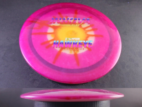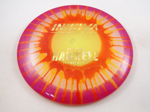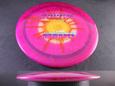 The Champion Dyed Hawkeye by Innova delivers the trusted, stable performance of the original Hawkeye with the premium durability of Champion plastic—now enhanced by stunning full-color dyed artwork. This fairway driver offers a smooth, straight flight with a gentle fade, giving players consistent accuracy and reliable control with a unique visual flair.