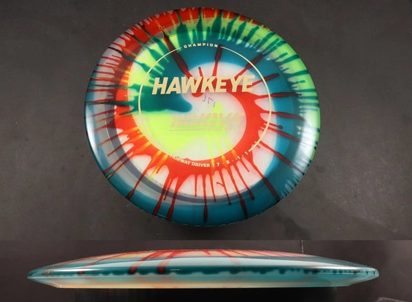 The Champion Dyed Hawkeye by Innova delivers the trusted, stable performance of the original Hawkeye with the premium durability of Champion plastic—now enhanced by stunning full-color dyed artwork. This fairway driver offers a smooth, straight flight with a gentle fade, giving players consistent accuracy and reliable control with a unique visual flair.