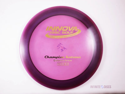 The Innova Katana in Champion plastic brings this high-speed, understable distance driver into one of Innova’s most durable and consistent blends. Champion plastic is known for its stiff, glossy feel and long-lasting stability, helping the Katana maintain its signature turn-and-fade flight pattern even after heavy use. This version is built for big distance lines, tailwind bombs, and players who want effortless glide with a late, sweeping finish.