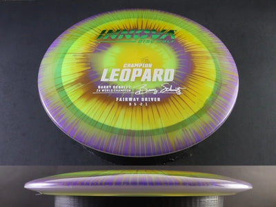 The Champion Dyed Leopard by Innova combines the smooth, controlled flight of the classic Leopard with the premium durability and vibrant artwork of Champion Dyed plastic. This fairway driver offers a comfortable, grippy feel and a reliable, slightly understable flight perfect for controlled distance and shaping lines through tight fairways.