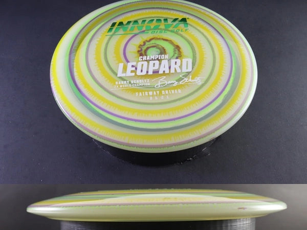 The Champion Dyed Leopard by Innova combines the smooth, controlled flight of the classic Leopard with the premium durability and vibrant artwork of Champion Dyed plastic. This fairway driver offers a comfortable, grippy feel and a reliable, slightly understable flight perfect for controlled distance and shaping lines through tight fairways.