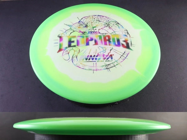 The Halo Star Leopard3 by Innova is a precision fairway driver that pairs effortless control with stunning Halo visuals. Halo Star plastic combines the premium grip and feel of Star with a firmer, more stable outer rim—adding slight torque resistance and extra confidence on release while maintaining the Leopard3’s smooth, glidey flight.