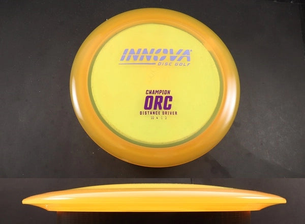 The Champion Orc by Innova is a stable distance driver designed for control, power, and consistency. Made from premium Champion plastic, it offers a stiff, durable feel that maintains its flight characteristics throw after throw. Known for its blend of speed, glide, and reliability, the Champion Orc performs exceptionally well in windy conditions while delivering long, accurate flights.