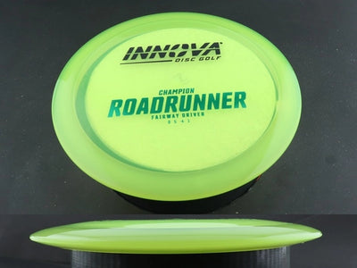 The Champion Roadrunner by Innova is an understable control driver built for effortless distance and smooth, glidey turnovers. Champion plastic provides a durable, stiff feel that adds torque resistance and maintains the disc’s flight characteristics over time—perfect for players who want consistent performance and long-lasting reliability.