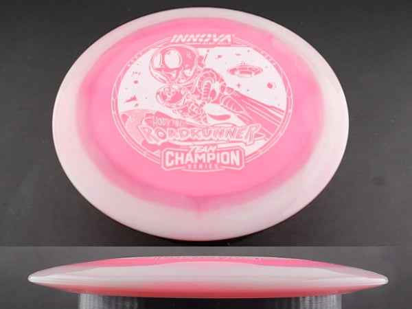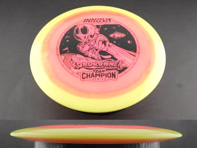The Innova Roadrunner in Signature Halo Champion plastic takes one of the game’s most trusted understable drivers and gives it a more durable, torque-resistant feel with premium Halo styling. Known for effortless turn and long glide, the Roadrunner is a go-to for shaping lines through the woods, stretching distance with hyzer-flips, and producing reliable rollers. The Halo Champion blend adds a touch of stability and long-term consistency, making this signature run more trustworthy without losing the Roadrunner’s signature workability.